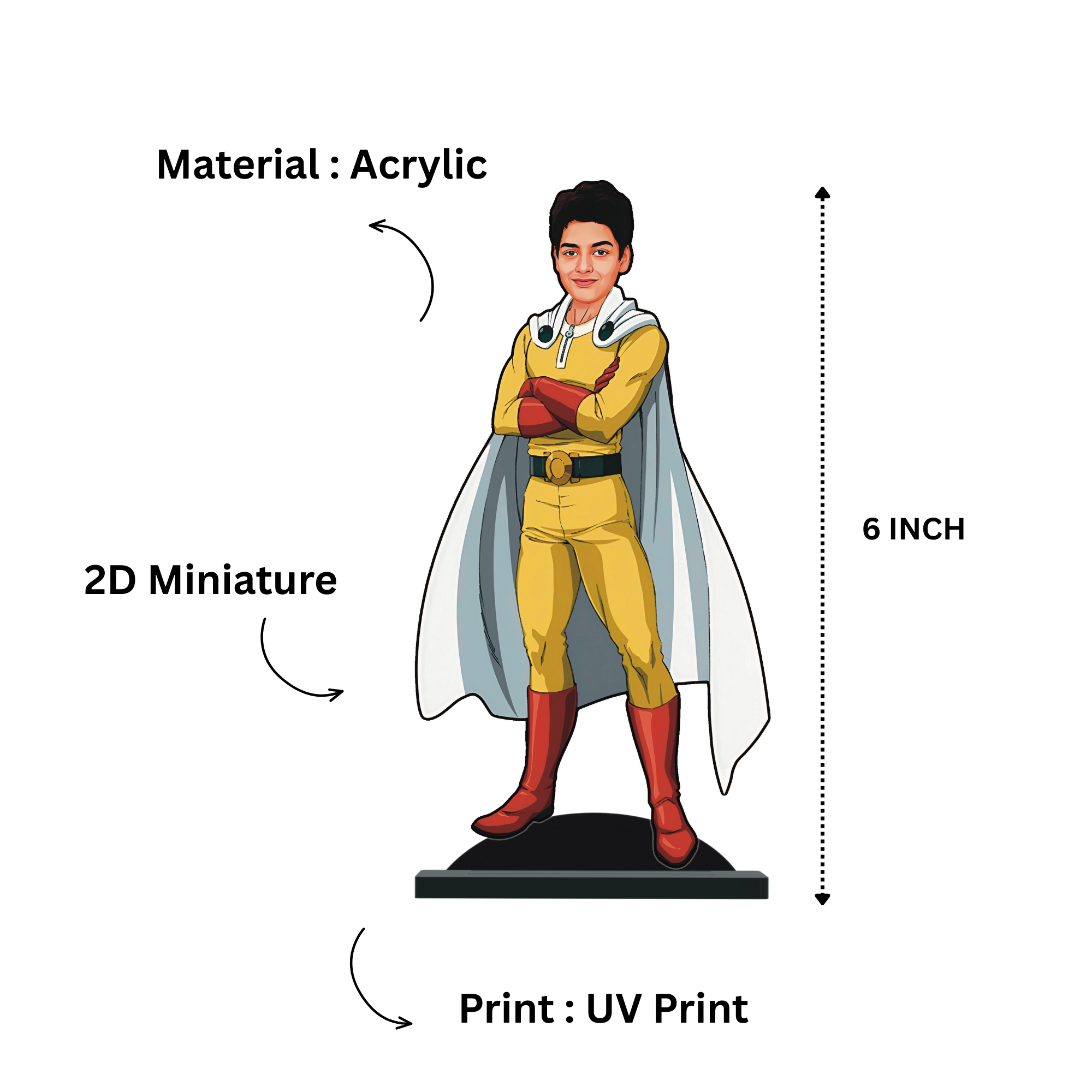Transform your child's selfie into a custom Anime One Punch Man minifigure! This personalized mini statue lets them become their favorite shield-wielding hero, making it the perfect gift for little anime fans and superhero dreamers.