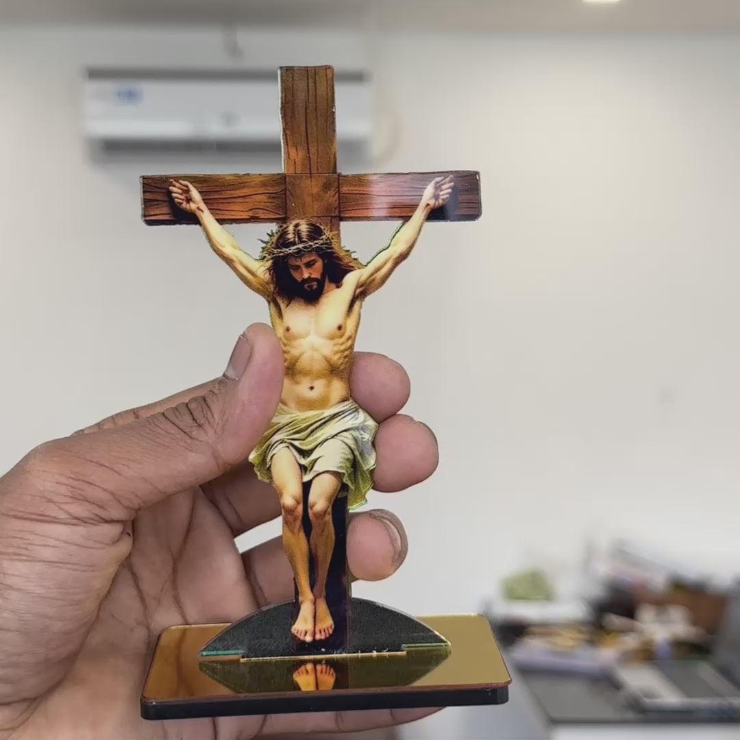 This beautifully crafted crucifix of Jesus Christ is printed on premium acrylic and designed to fit perfectly on your prayer table, desk, or car dashboard. It serves as a powerful reminder of faith, sacrifice, and hope, bringing peace and blessings into your daily life. A meaningful gift for loved ones on religious occasions or as a token of encouragement.