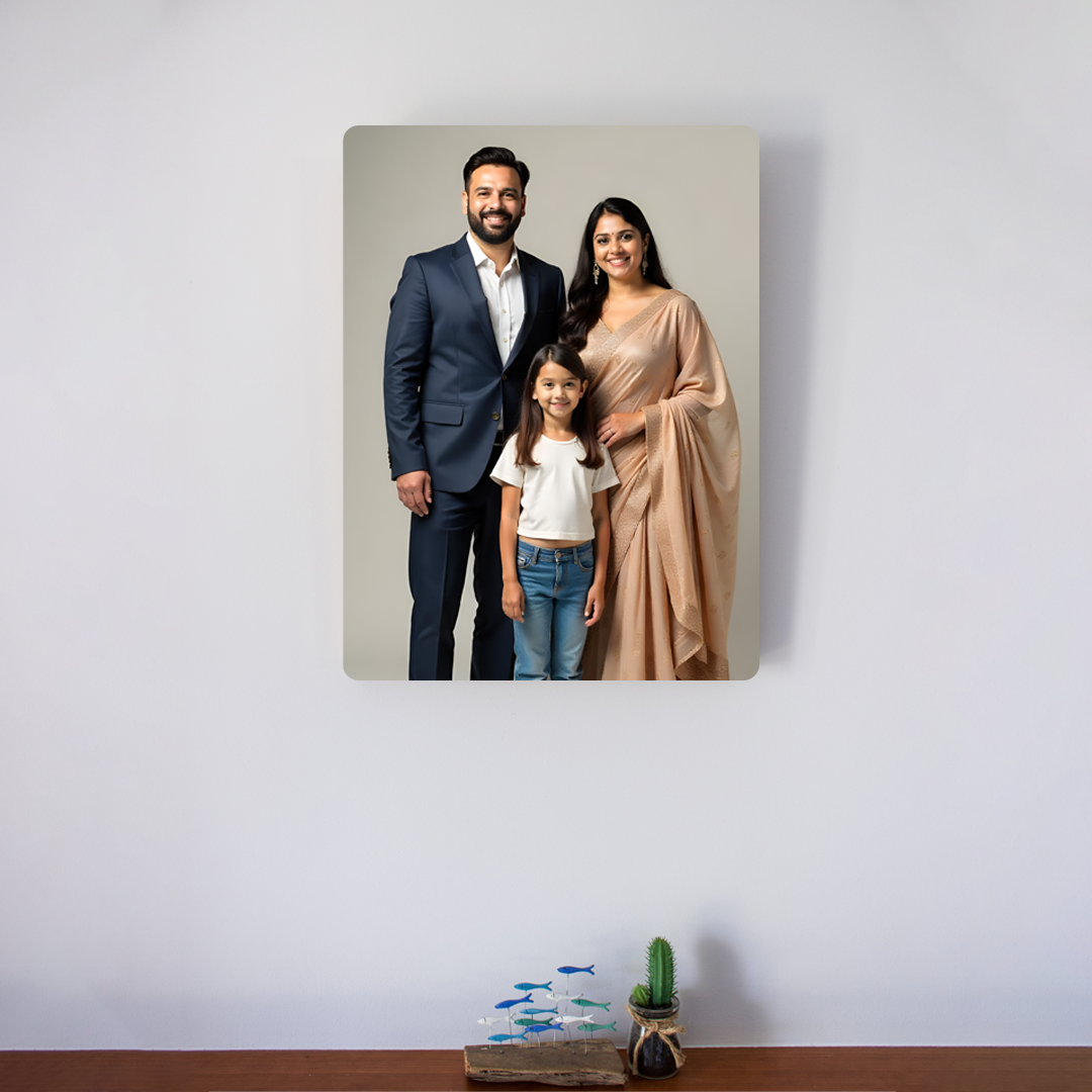 A premium acrylic photo frame with a clear, glass-like finish. Printed using high-quality UV print for sharp details and long-lasting colors. Custom-made using your photo, perfect for home décor, office desks, and gifting on special occasions.