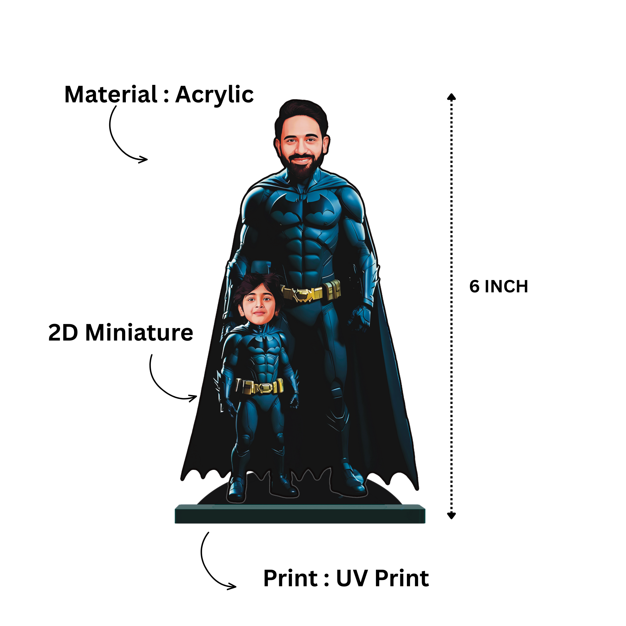 Turn your father and child’s selfies into action-packed Batman minifigures! This personalized mini statue captures the heroic bond between a father and his little hero, making it the perfect keepsake or gift for families who love adventure and superheroes.
