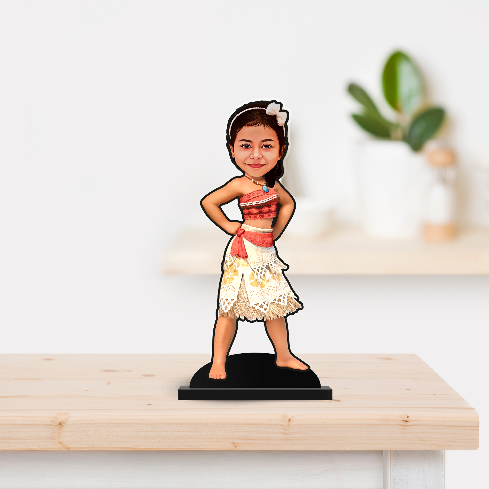 Transform your childâs selfie into a magical Moana minifigure! This personalized statue captures her adventurous spirit and long, flowing hair, making it the perfect gift for little dreamers who love tales of bravery, friendship, and the magic of dreams.